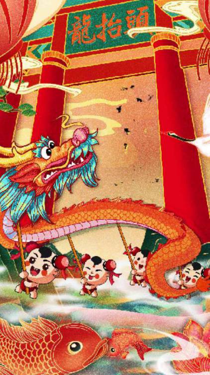 图穷联 » 中国风红色二月二龙抬头福娃舞龙插画视频