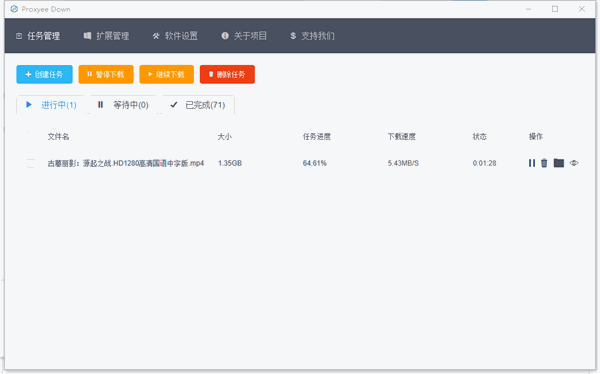 Proxyee Down 是一款开源的免费软件,基于 Aria 2 的高速下载内核和扩展,可以方便并快速的“下载所需资源,特色功能就是该软件无任何的广告、无流氓行为,界面清爽大气,操作方法简单实用。最近百度网盘不限速下载器层出不穷啊,Proxyee-Down 3 也是全新改版采用了 Aria 2 技术,下载自动切换线路,支持设置超高线程爆速下载,更换了全新的图标及操作界面,亲自测试使用”下载速度不比 Pandownload 慢,甚至有过之而不及,推荐下载使用。