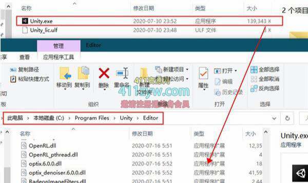5、复制crack\\\\Unity\\\\2021.1.0f1下的Unity.exe到C:\\\\gram Files\\\\Unity\\\\Editor