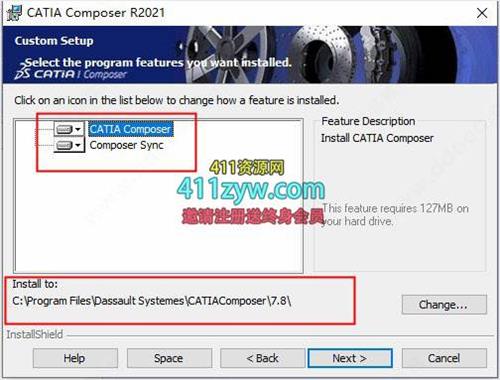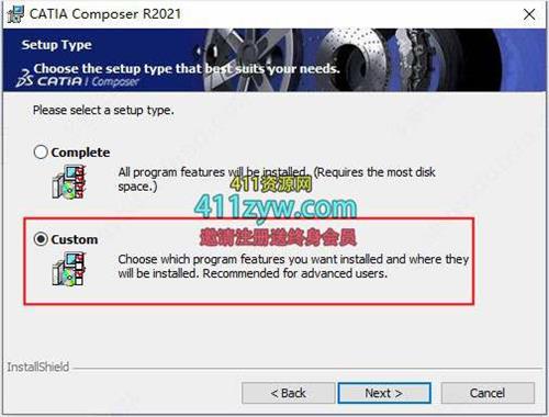 4、双击文件“x64-CATIAComposerFull-R2021.msi”安装软件,安装选项选择自定义coustom;