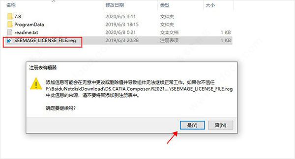 3、再运行“ SEEMAGE_LICENSE_FILE.reg”并确认将信息添加到Windows注册表中;