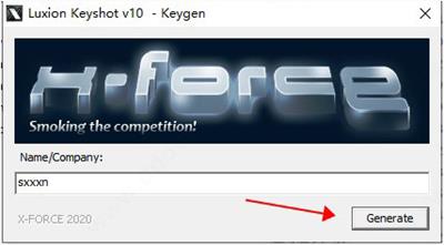 6、运行crack目录下载的Keygen注册机,点击generate生成KeyShot10.ilc文件;