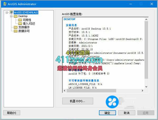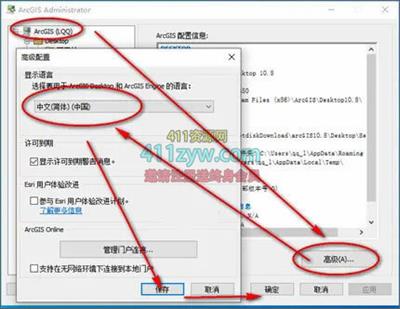 12、安装好汉化包后打开ArcGIS Administrator选择高级,显示语言中切换到中文(简体)就可,之后确定应用关闭软件