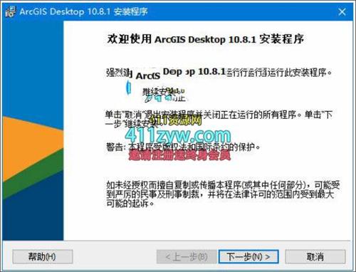 2、首先双击运行”ArcGIS_Desktop_1081_zh_CN_175121.exe”程序,进入安装向导