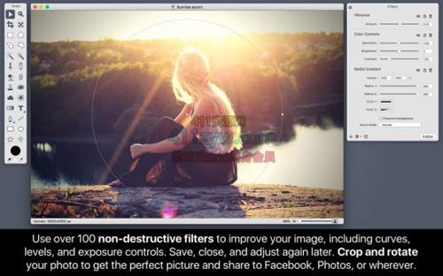 是一款轻量图片处理软件,支持MacOS 10.11及以上版本,简单易用,可以代替Photoshop来编辑照片、滤镜效果、添加文字或矢量元素等。