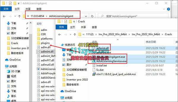 10、再将文件夹下的“adlmint.dll”、AdskLicensingAgent.exe、AdskLicensingService.exe复制到软件许可证管理器目录下;