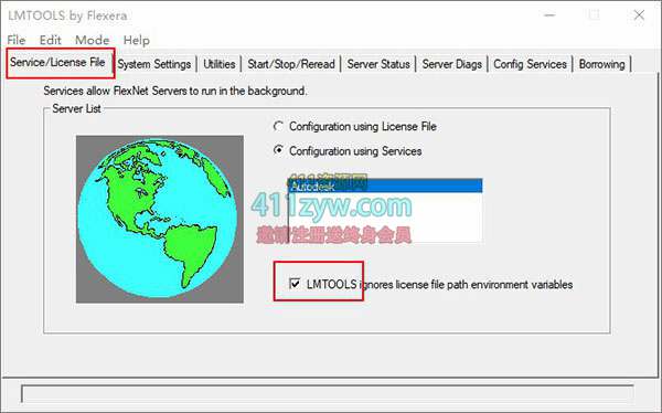14、点击Service/License File标签,打钩LMTOOLS ignores license file path environment variables;