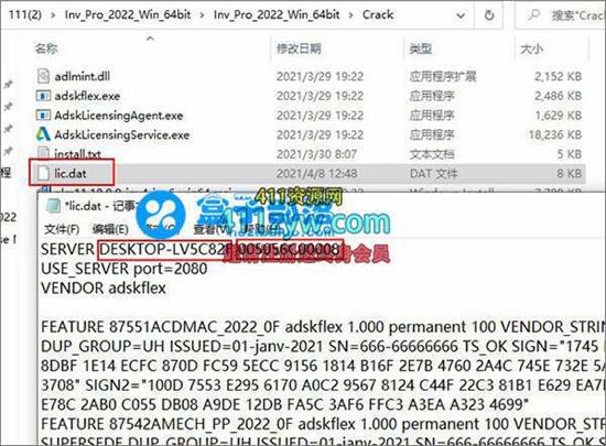 11、右键记事本编辑破解许可证文件lic.dat,在里面填上您的计算机名和MAC地址,编辑好之后保存;