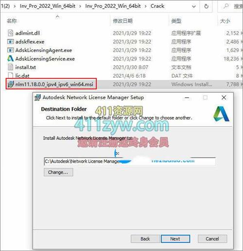 8、打开Crack文件夹,运行”nlm11.18.0.0_ipv4_ipv6_win64.msi”安装网络许可证管理器;