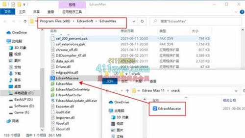 1、下载解压得到亿图图示11中文源程序和破解补丁;