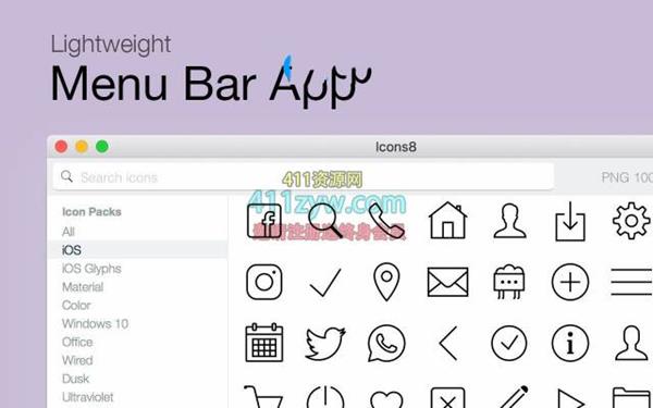 Icons8,一款强大的图标库软件,内含丰富的图标资源,允许用户搜索图标并直接插入Photoshop,Xcode或任何其他程序。