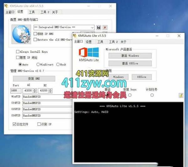 KMSAuto Lite 是一款俄罗斯大神Ratiborus制作的KMS激活工具,能自动安装KMS服务激活Windows、Office 所有版本!支持手动安装及删除激活产品密钥、可选多种方式安装及删除KMS服务、创建及删除KMS服务及续期计划任务,还可以保存激活信息。