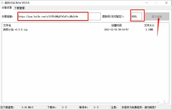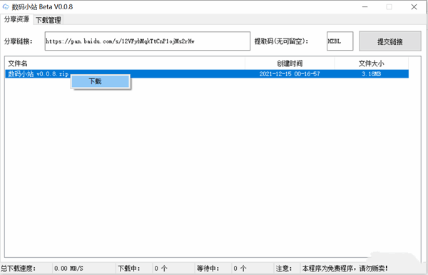 [下载工具]数码小站 v0.08 免费百度网盘不限速下载工具