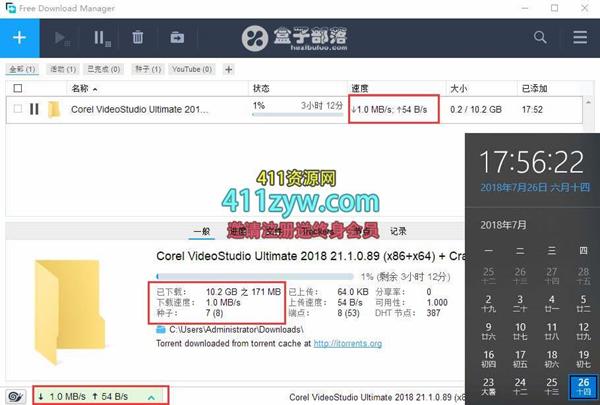 3、http下载种子下载:如果已经关联了电脑上面的所有浏览器,只需要在点击时候,free download manager会自动在后台下载软件。如果没有关联,那么就需要在下载时候将下载链接复制,然后点击软件右上角的加号然后粘贴地址,如果是种子直接拖入软件主页即可。由于win版本没有提供下载的保存文件位置设置,所以在下载时候点击图二中的三点设置下载保存位置,要不然到时候不知道文件下载到了那里,设置好了点击下载即可开始下载。