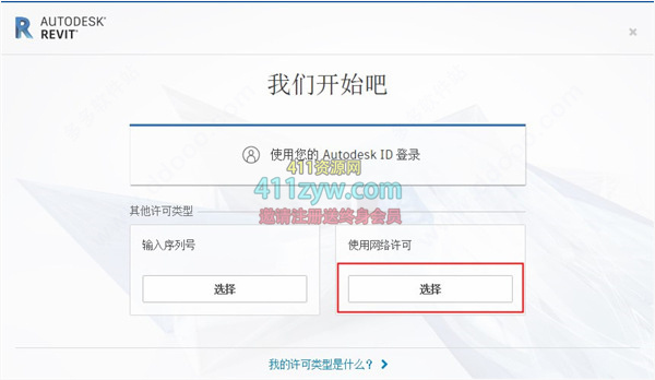 16、打开Autodesk Revit 2022软件,出现提示时,选择“使用网络许可证”;