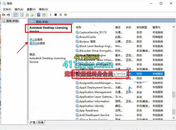 6、找到Autodesk Desktop Licensing Service服务点击停止;