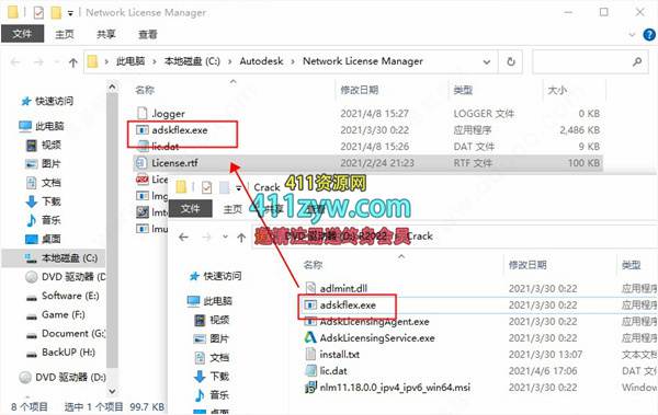 10、将crack补丁中的adskflex.exe,复制到目录下替换;