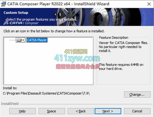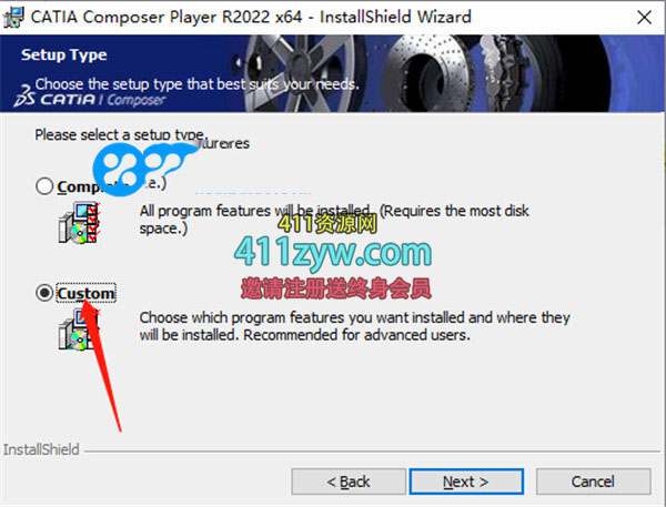 4、双击文件“x64-CATIAComposerFull-R2022.msi”安装软件,安装选项选择自定义coustom;