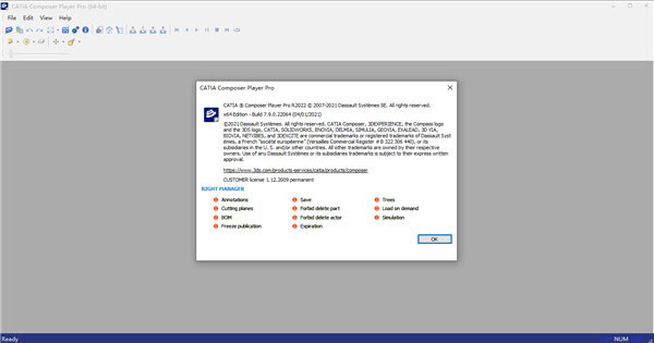 9、至此,软件成功激活,以上就是catia composer player r2022破解版的详细安装教程,祝大家使用愉快。