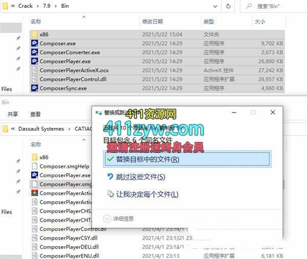 1、下载解压,得到catia composer player r2022原程序和破解文件;