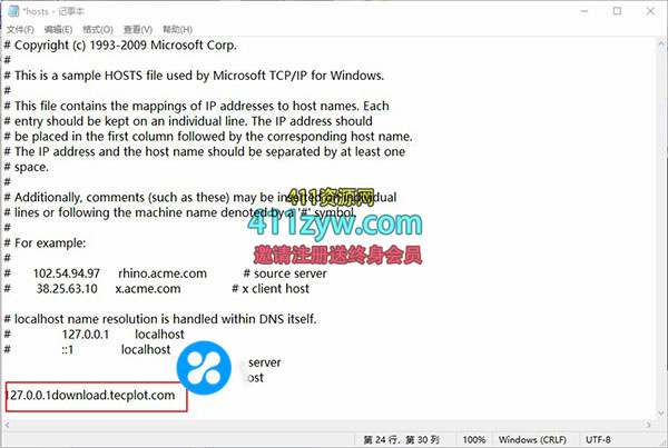 将127.0.0.1download.tecplot.com添加进去并保存退出。