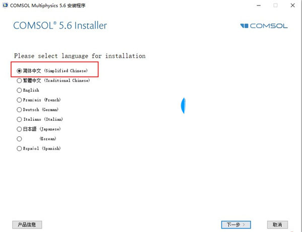 2、首先用虚拟光驱加载或者用winrar直接解压COMSOL_5.6.0.280_DVD.iso镜像文件,再双击setup.exe程序,选择简体中文语言;
