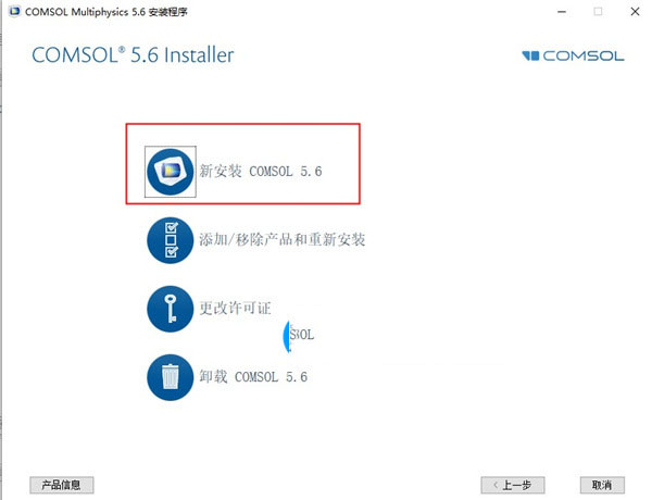 3、选择新安装comsol5.6;