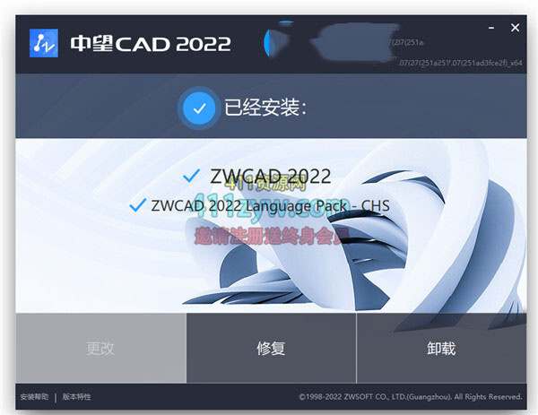 6、至此,中望CAD2022破解版以安装破解完成,有需要的用户赶紧来本站下载体验吧。