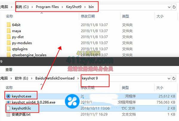 9、成功安装后,将破解文件“keyshot.exe、keyshot9.lic”复制到软件安装目录bin下替换;