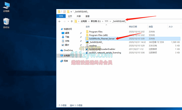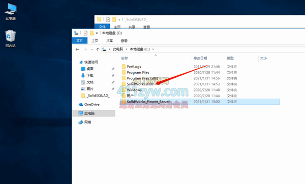 5 将“SolidWorks_Flexnet_Server”文件夹复制(Ctrl+C),粘贴(Ctrl+V)到与一开始新建的“SolidWorks2021”文件夹同目录下!