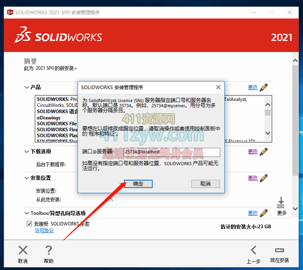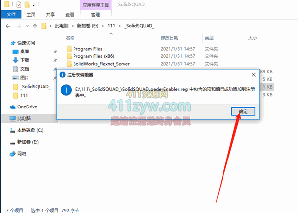 4 选中“sw2021_network_serials_licensing”双击打开,点“是”,然后点“确定”!