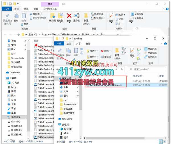 1、下载解压,得到Tekla Structures 2021 SP2中文原程序和patched破解文件;