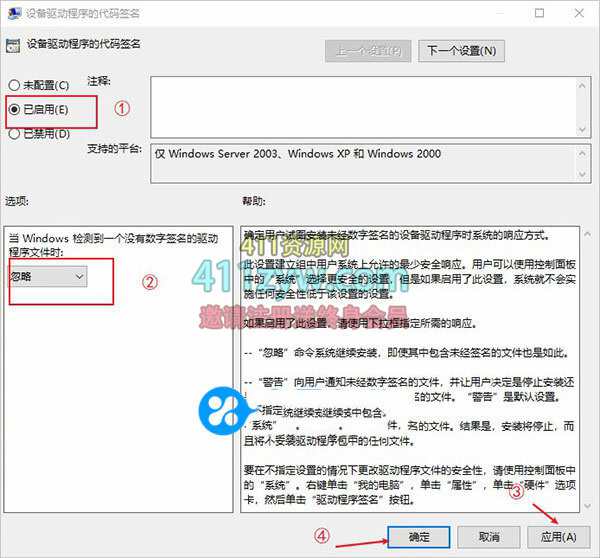 点击选择 已启用 ,展开选择 忽略, 点击应用,点击确定退出;