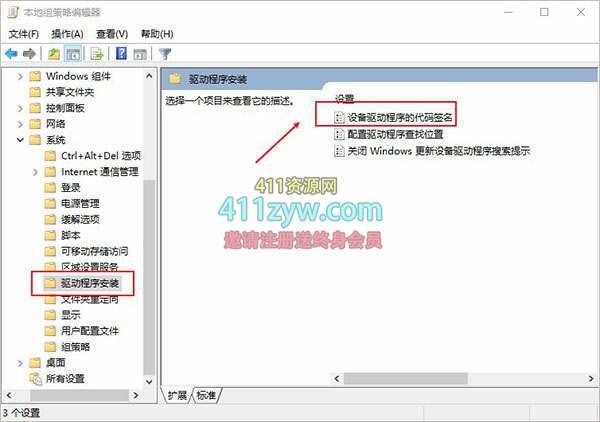 点击驱动程序安装,然后双击 设备驱动程序的代码签名;