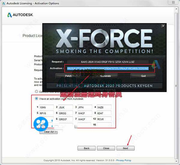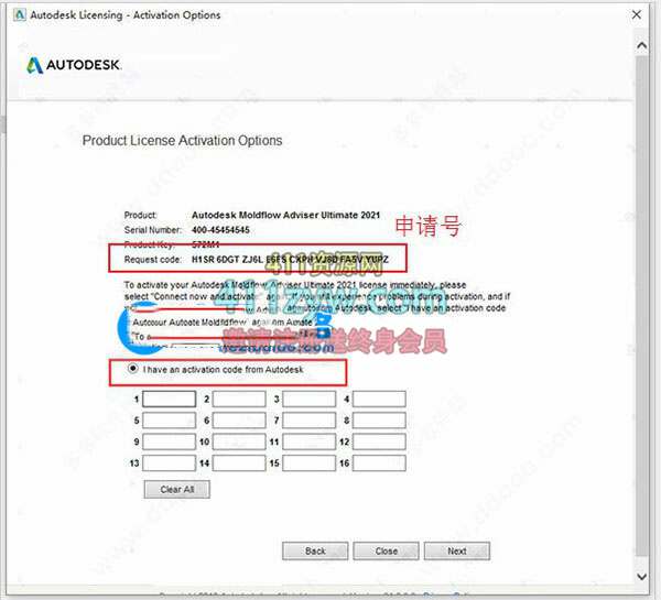 12、将第十步骤中的申请号复制到注册机Request中,再点击Generate得到激活码;