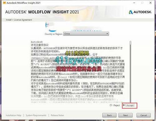 4、勾选”i accept”,同意条款安装;