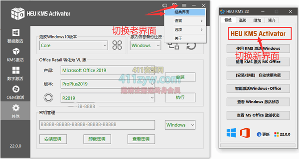HEU KMS Activator 是”知彼而知己”的大神所开发的KMS激活工具,此工具可以完美的激活Windows以及Office的VL版本,无需联网即可一键激活,目前最新版的HEU KMS Activator 新增Win 10/11数字许可证激活,不在是以前的那个KMS激活了。很多系统都可以使用数字权利永久激活使用,而且此工具带有静默激活参数可以用来封装使用,在封装系统安装后调用HEU KMS Activator 计划任务 加上静默激活参数可完美激活,此版本激活成功率最高,推荐系统封装爱好者使用。