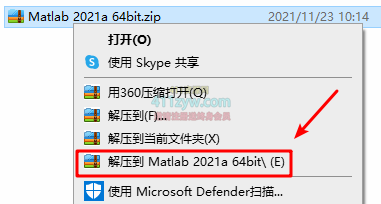 1.鼠标右键解压到“Matlab 2021a”