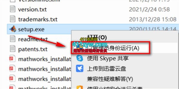 3.选中setup,鼠标右键选择“以管理员身份运行”