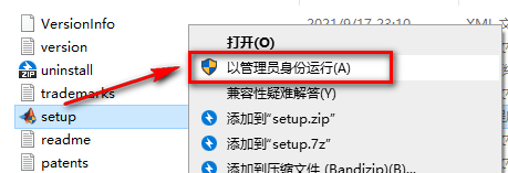 3.选中setup,鼠标右键选择“以管理员身份运行”