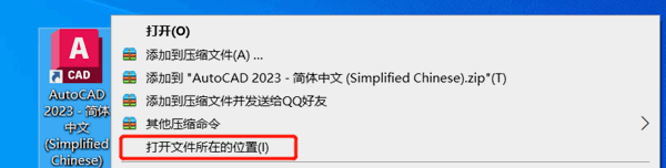 10. 右键桌面AutoCAD 2023图标,打开文件所在的位置。