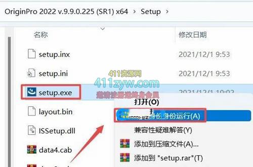 2.打打开刚刚解压的文件夹,双击打开“Setup”文件夹,找到并选中“Setup.exe”,鼠标右键点击“以管理员身份运行”