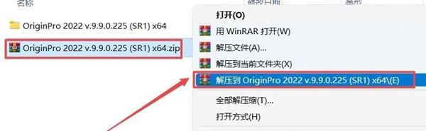 1.选中下载的压缩包,然后鼠标右键选择解压到”OriginPro 2022″