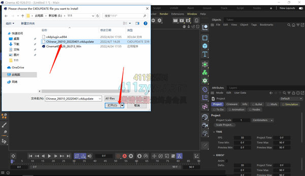 15、选择文件夹中的Chinese_26010_20220401.c4dupdate程序,然后点打开!