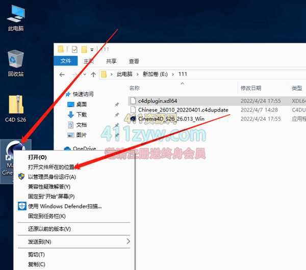 10、右键选择桌面的C4D图标,然后选择“打开文件所在位置”!