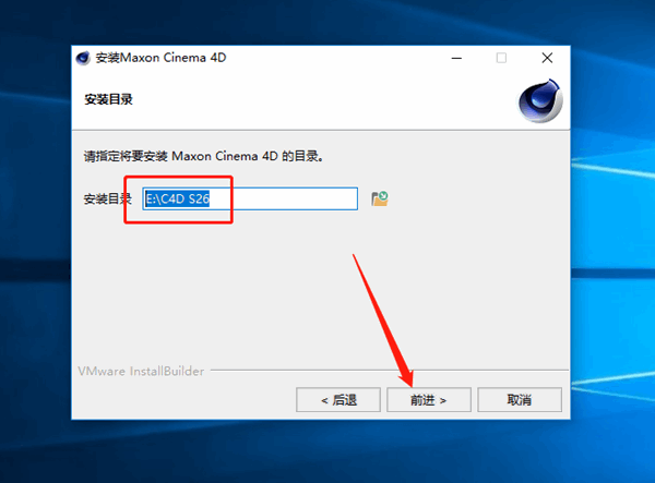 5、选择一开始新建的“C4D S26”文件夹,点击“前进”,再点击“前进”!