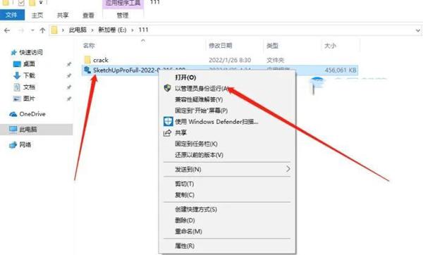 3. 选中“SketchUpProFull-2022-0-316-108”,右键“以管理员身份运行”!