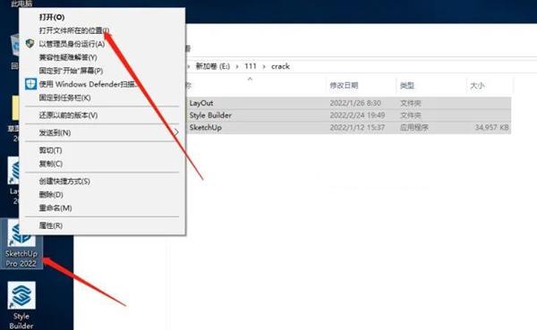 8. 选中桌面的SketchUp Pro 2022程序,右键“打开文件所在的位置”!