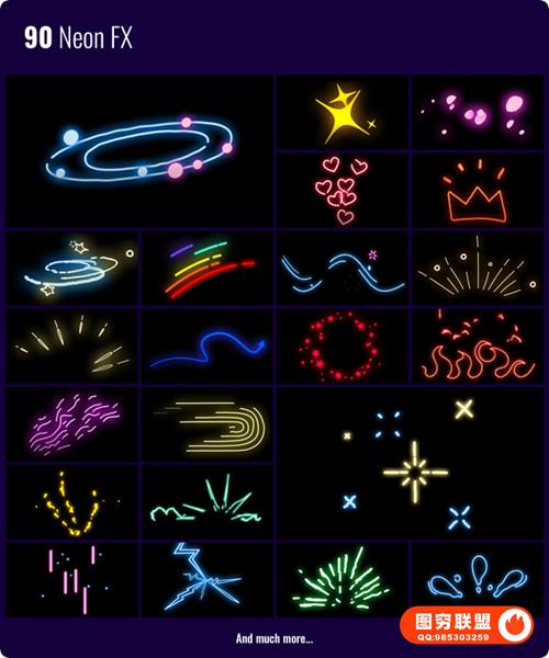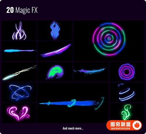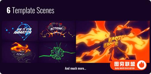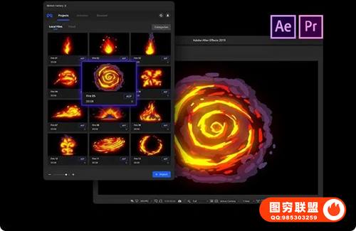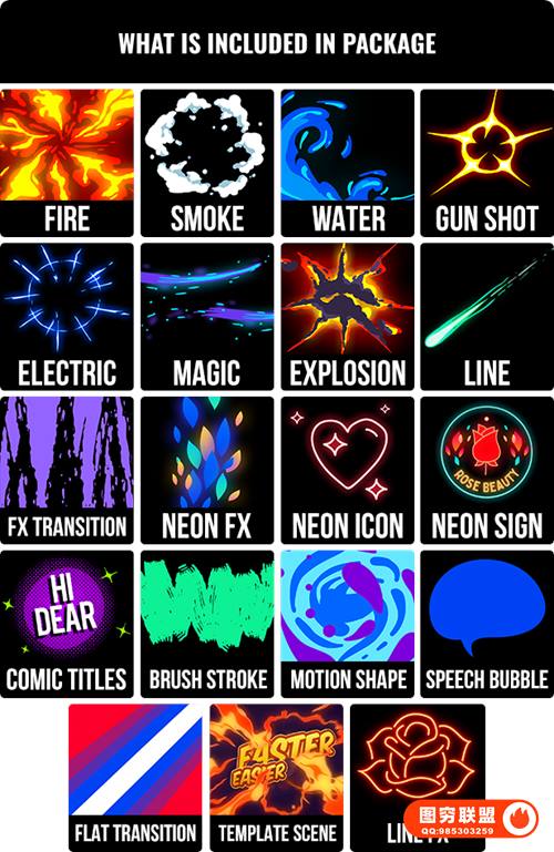 图穷联 » [AE/PR脚本插件]850种动漫卡通火焰烟雾能量电流爆炸转场液体霓虹魔法MG动画元素包
