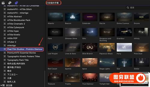 图穷联 » [FCPX插件]30款大气时尚奢华婚礼颁奖闪耀文字标题动画 Pixel Film Stud